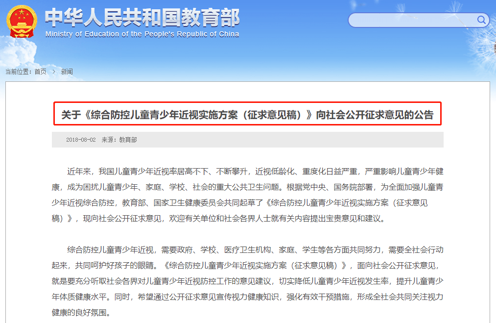 早在2018年,教育部等八部门联合印发了《综合防控儿童青少年近视实施方案》,在近4年的努力下,儿童青少年近视防控工作取得了明显进展。